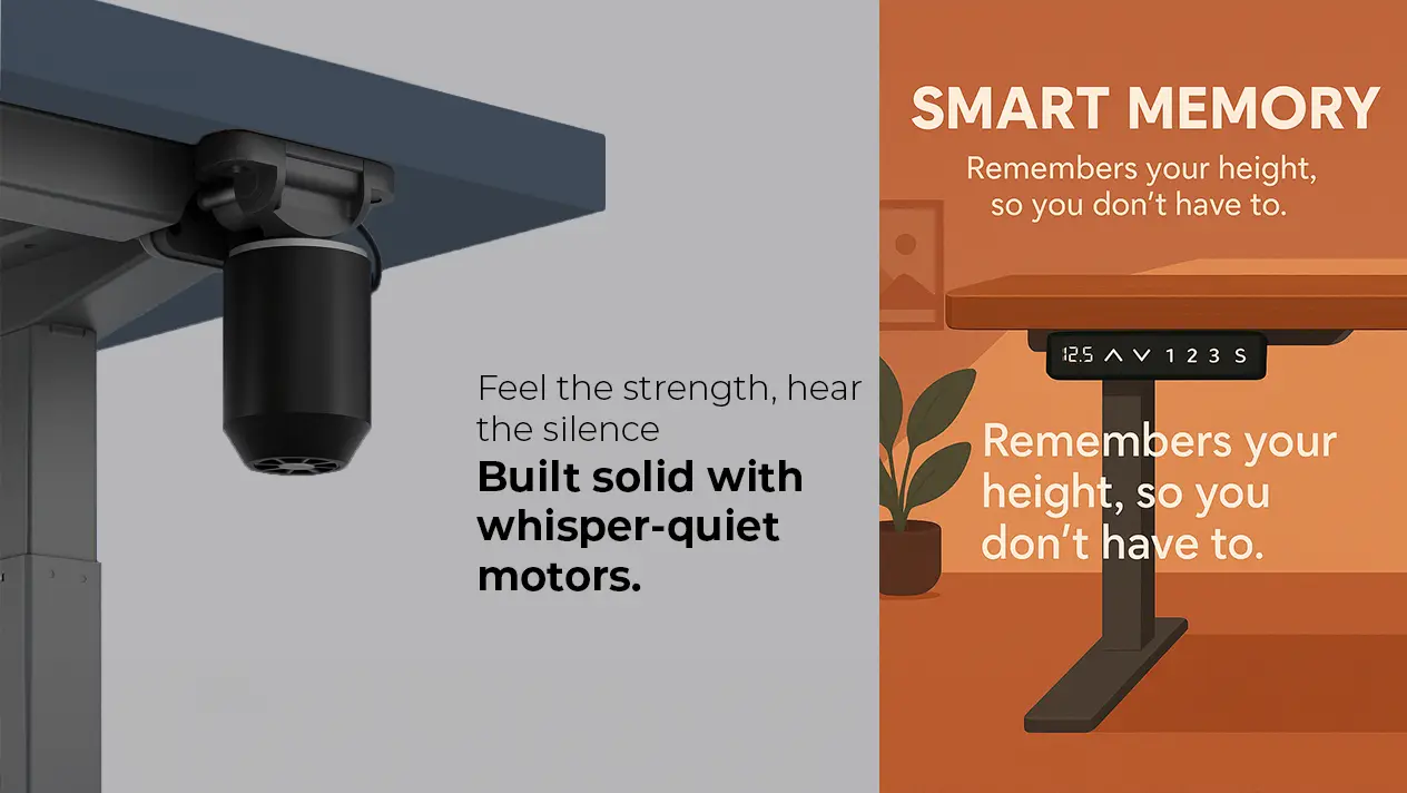 I start my mornings sitting and switch to standing in the afternoon β itβs the perfect balance. The motor is whisper-quiet and the memory presets are super convenient. My back pain has noticeably decreased.